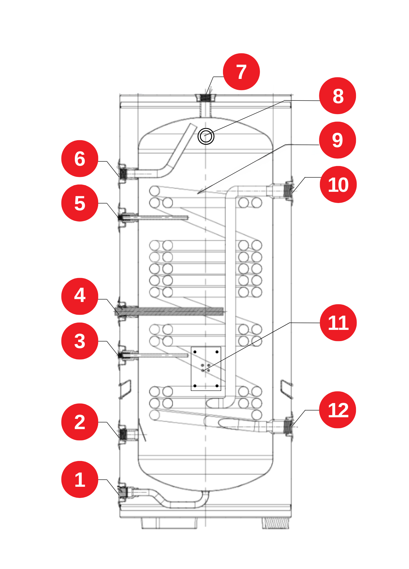 ⚙️ 11 - Miejsce na grzałkę elektryczną G 1", wbudowany termostat