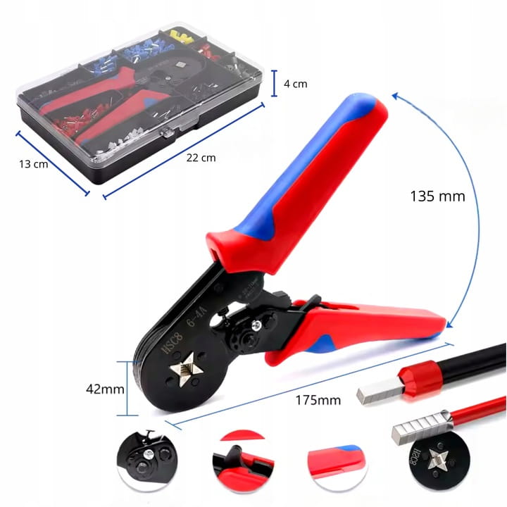 ZACISKARKA DO TULEJEK I KONEKTORÓW KABLI - PRASKA + ZESTAW 1200 SZT